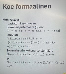 Itslearning (ITS) -koe ja testiaktiviteettia hyödynnetään opiskelijan osaamisen testaamisessa. Kai Heikkilä selvensi testin ja kokeen pisteytystä, ja kävimme läpi kaavat näiden laskemiseksi. Haasteena koettiin ITSin erilaisten käsitteiden haasteellisuus. Olisiko tarvetta niin sanotulle ITS-”sanakirjalle”, jossa tavoitteena olisi käsitteiden parempi avaaminen?