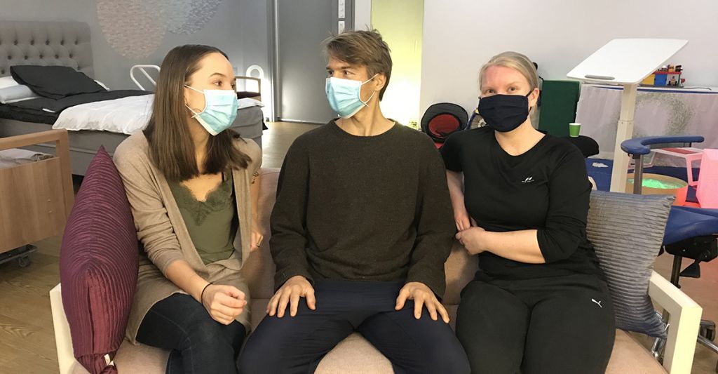 Kuva: Fysioterapeuttiopiskelijat Karoliina Männistö (vas.), Ville Nikkari ja Eeva Pentikäinen