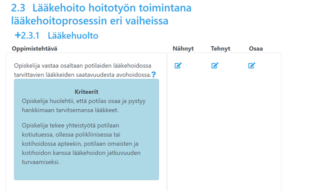 Opiskelijan lääkehoidon osaaminen näkyväksi