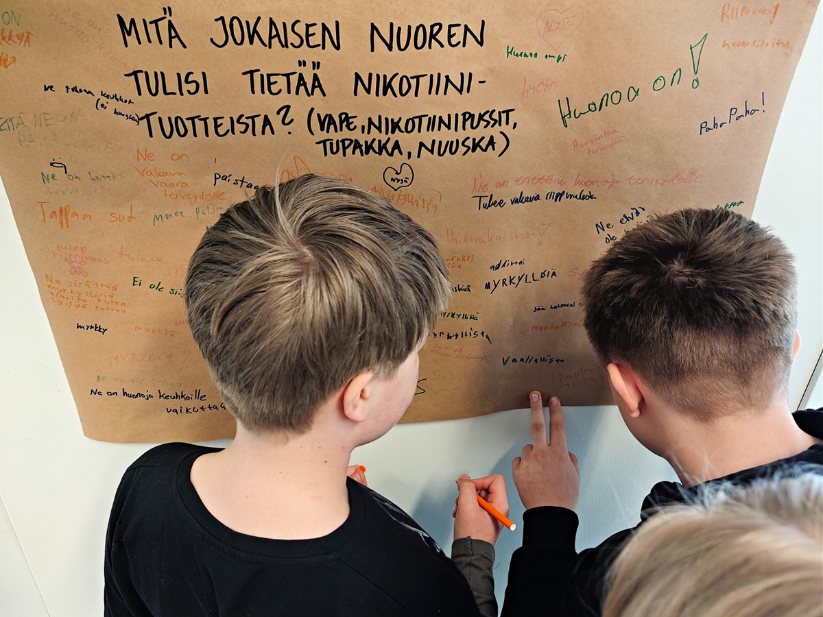 Turun ammattikorkeakoulun luotsaaman Vinssi-hankkeen terveyskioskilla kysyimme yläkoululaisilta, mitä jokaisen nuoren tulisi tietää nikotiinituotteista. Heidän viestinsä oli yksiselitteinen: nikotiinituotteista ei ole mitään hyötyä, mutta niistä seuraa monia vakavia haittoja.