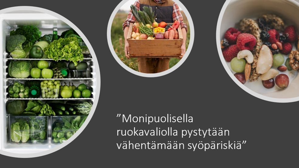 Ravitsemussuosituksiin kuuluu kasvisten ja hedelmien sekä täysjyväviljatuotteiden käyttö. Punaisen lihan, sokeroitujen juomien, alkoholin ja runsasenergisten valmisteiden käyttöä tulisi välttää. Monipuolisella ruokavaliolla pystytään vähentämään syöpäriskiä. Kun painonhallintaan yhdistää terveellisen ruokavalion ja liikunnan, voisi syöpätapauksista ehkäistä jopa joka kolmannen (2).