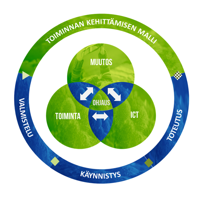 Kehittämisprojektin tavoitteena oli parantaa prosesseja sekä lisätä ymmärrystä toiminnallisen muutoksen merkityksestä ICT-projekteissa.