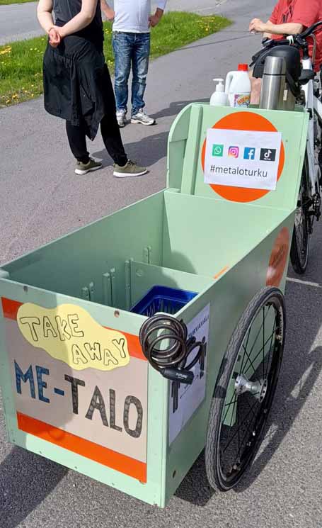 Koronapandemia rajoitti ja vaikeutti työskentelyä monin tavoin. Aluetyössä se merkitsi vähäisempiä kontakteja alueen asukkaisiin. Pansio-Pernossa sentään päästiin haastattelemaan asukkaita ja mukaan Kahvi-Kamelin kierroksille. Kyseessä on sähköpolkupyörä, jonka mukana kulkevat kahvi-, tee- ja kaakaovarusteet. Ilmaisen kupillisen äärellä on luontevaa vaihtaa kuulumisia ja kutsua asukkaita Me-talon moniin aktiviteetteihin.