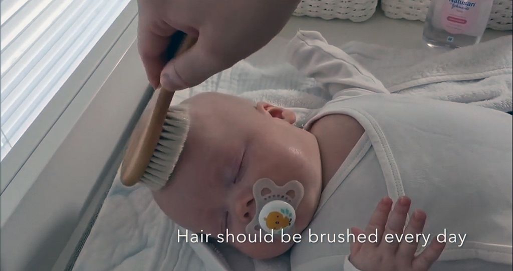 Rakensimme opetusvideomme kohtaukset vastasyntyneen kylvetyksen ympärille. Kuvasimme vauvan riisumisen, kylvetyksen, ihon, silmien ja navan hoitoa, kynsien leikkaamista, hiusten harjaamista sekä vauvan pukemista. Näihin kaikkiin liitettiin vahvasti toimenpiteiden oikea tekniikka, aseptisuus sekä vastasyntyneen oikeaoppinen käsittely motorisen kehityksen tukemiseksi. Opetusvideolla tärkeimpiä kohtia korostettiin tekstityksellä.